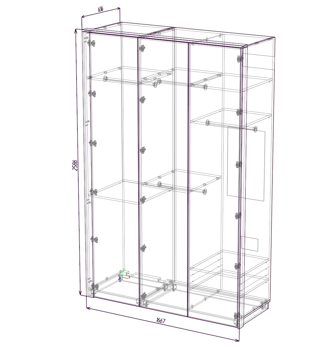 Сочетание встроенных шкафов, зеркала, подсветки и открытых секций позволило создать для коридора цельное и функциональное решение. Ниже также показаны чертежи и внутреннее наполнение мебели, которые помогли продумать удобное хранение, эргономику и аккуратный внешний вид пространства.